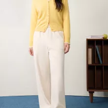 Made from a soft blend of polyester and spandex, the fabric has a smooth, lightweight texture with a touch of stretch for flexibility. The elastic waistband ensures a snug, comfortable fit without digging in, while the high-rise waist and pleated front add flattering structure to your silhouette. Available in classic beige or sleek black, these pants are your go-to solution for effortless styling all season long.