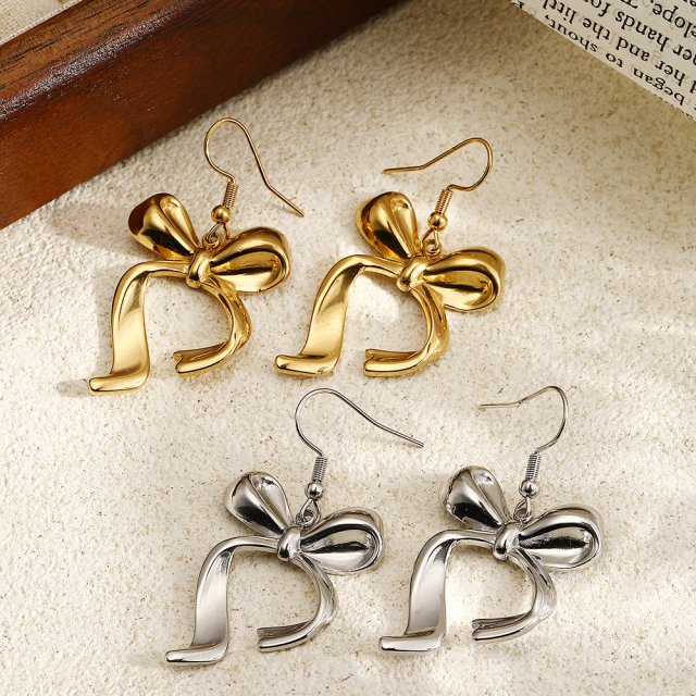 Stainless Steel Bow Dangle Earrings