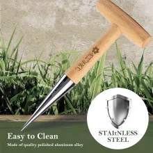 Stainless Steel Garden Dibber Tool with Wooden Handle