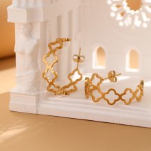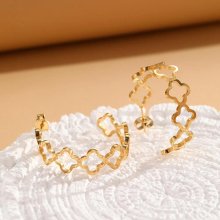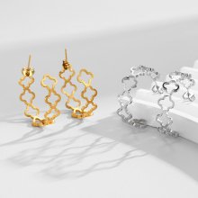 Elevate your daily style with these elegant stainless steel geometric C-shaped earrings featuring a hollowed-out four-leaf clover design. Perfect for women who appreciate trendy yet timeless accessories, these earrings add a subtle touch of luck and charm to any outfit. Their unique shape and delicate details make them a versatile addition to your jewelry collection, ideal for everyday wear or special occasions.