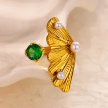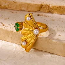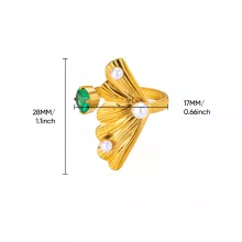 The combination of high-quality materials and intricate design makes this ring not just a piece of jewelry but a symbol of style and elegance. The inlaid green zircon stones radiate vibrant color, set against the sleek stainless steel base and topped off with an 18k gold plating. Its adjustable opening design ensures a comfortable fit for most finger sizes, making it a versatile and trendy addition to any jewelry collection.