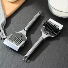 This noodle cutter is made from high-quality, food-grade stainless steel – rust-resistant, durable, and easy to clean. Its sharp, evenly spaced blades (0.2 inch apart) let you create uniform noodles or finely shredded vegetables in seconds. The comfortable grip ensures ease of use and control, while the built-in hook allows for convenient hanging and space-saving storage in your kitchen.