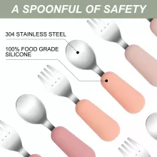 Crafted with a durable stainless steel core and soft silicone handles, these utensils are gentle on gums and easy to grip. They’re completely free from harmful chemicals like BPA, latex, PVC, phthalates, and nitrosamines, so you can feel confident about what your child is using every day. Designed with solid colors and a smooth finish, this set not only looks cute on the table but also offers a no-fuss, eco-friendly option for busy parents.