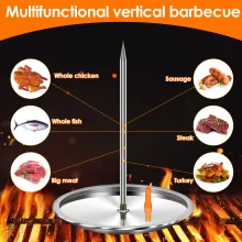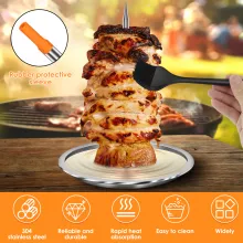Made from high-quality food-grade 304 stainless steel, these skewers are rustproof, heat-resistant, and built for long-term use. The vertical spikes thread securely into the round base plates, ensuring a tight fit that won’t wobble or tilt—even under the weight of a whole chicken or stacked meat. The sturdy design keeps your food upright, allowing it to cook evenly and baste in its own juices for unbeatable flavor.