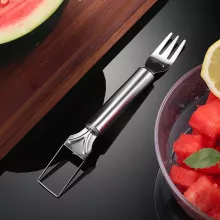 Crafted from high-quality stainless steel, this slicer offers strength and durability while resisting rust and stains. Its sharp blades glide effortlessly through watermelon and other melons, ensuring clean cuts every time. The ergonomic handle provides a comfortable grip, making slicing safer and less tiring. The double-ended fork serves as a handy tool for picking up fruit pieces, while the fruit pulp digger allows you to scoop out the flesh cleanly and efficiently. This all-in-one tool is perfect for anyone who enjoys fresh fruit but wants to save time and reduce waste.