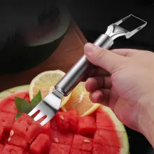 Upgrade your kitchen tools with this stainless steel watermelon slicer and fruit divider. Add it to your cart today and enjoy effortless fruit slicing and serving with style and ease!