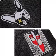 - Stylish design: A playful character badge and pearl appliques that make a unique fashion statement.