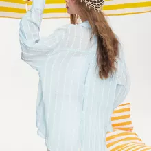 What sets this shirt apart is its fresh take on classic stripes. The bold color blocking adds a fashion-forward edge while still staying suitable for everyday wear. Slight stretch in the fabric gives you just enough flexibility to move freely, and the breathable blend ensures you stay comfortable even during warmer days. It’s a perfect choice for summer – light, stylish, and so easy to pair with everything from tailored trousers to denim jeans.