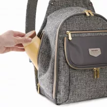 This diaper backpack offers a generous interior that makes organizing simple. Even though the design looks sleek, it holds more than you’d expect. Inside, you’ll find well-planned compartments for your baby’s bottles, diapers, wipes, toys, and your own essentials. The large front pocket and internal storage keep everything tidy and accessible. Measuring approximately 11 in x 5.5 in x 15 in, it provides roomy comfort without feeling bulky.
