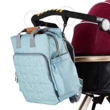 - Includes stroller hooks and a convenient changing pad