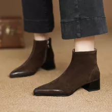 Step into the new season with confidence and comfort in these Suede Pointed-Toe Chunky Heel Ankle Boots. Designed for women who want a blend of modern style, all-day wearability, and premium materials, these boots are the perfect addition to your fall and spring wardrobe. Crafted from soft kid suede leather and lined with genuine leather or warm fleece, they offer a luxurious feel inside and out. The pointed toe creates a sleek, refined look, while the sturdy 1.6-inch chunky heel provides height without sacrificing stability.