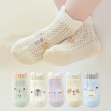 Made from a lightweight blend of cotton, nylon, and spandex, these socks feel soft on delicate skin and offer a snug yet stretchable fit. The thin mesh knit keeps feet dry and fresh on hot days, while the seamless, boneless design prevents irritation and discomfort—especially important for sensitive baby skin. Adorned with fun cartoon patterns, they add a cheerful touch to any summer outfit.