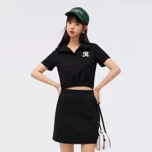 Perfect for a day at the park, a casual brunch, or a fun summer outing, this set effortlessly combines style with functionality. The embroidered polo neck top adds a unique, refined touch, while the elastic waist skirt provides all-day comfort. The playful print and mini length ensure you stay chic and cool, making this outfit a go-to choice for your summer wardrobe.