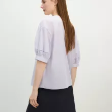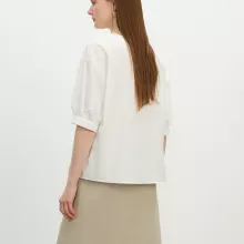 Crafted from a breathable broadcloth fabric with a soft synthetic fiber blend—76.6% polyester, 18.7% modal, and 4.7% spandex—this shirt offers just the right amount of stretch for ease of movement while remaining light and airy against the skin. The half-length sleeves and straight silhouette create a polished yet relaxed silhouette suitable for women of all ages, especially those who appreciate timeless style with a modern twist.