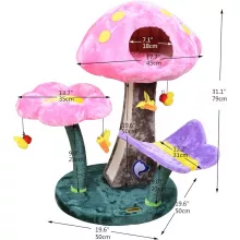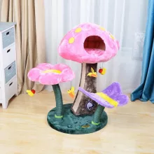 This cat tree offers more than just a resting spot. With a gentle flower-shaped cat bed, plush hammock, elevated lounging platform, and sturdy scratching post, it supports your cat’s natural instincts. Built from durable wood and featuring playful hanging bee toys, it’s an environment that stimulates curiosity while encouraging hours of play and rest. The soft, curved hammock cradles your feline friend like a gentle hug, while the top perch satisfies their love of height and watchful lounging.