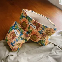 Make your everyday essentials feel like a work of art with this stunning sunflower print makeup bag. Inspired by oil painting-style florals, this cosmetic pouch blends beauty and function in the most vibrant way. Whether you’re storing makeup, toiletries, or small accessories, this stylish clutch is designed to brighten your day with its bold floral pattern and artistic flair.