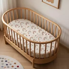 Life with a baby can get messy, so we made sure this crib sheet is machine washable for effortless cleaning. Simply toss it in the wash on a gentle cycle and tumble dry on low or line dry. The fabric is naturally resistant to creasing, keeping it smooth and fresh-looking after every wash.
