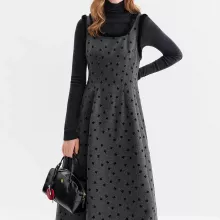 This dress is made from a premium knit blend of polyester, acrylic, and viscose. The fabric feels soft on the skin while offering warmth for cooler autumn and winter weather. The sleeveless design makes it easy to layer with coats, cardigans, or turtlenecks.