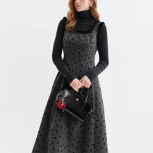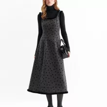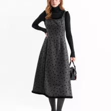 This sweet and elegant A-line dress is made for women who love simple beauty with a touch of charm. Designed for winter commuting and leisure, it blends a princess-inspired look with everyday comfort. The soft bow pattern adds a delicate detail without being too loud, making it perfect for both casual days and refined outings.