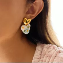 These heart-shaped earrings are the perfect blend of style and functionality. Whether you’re attending a romantic evening, celebrating an anniversary, or simply adding a touch of femininity to your daily wardrobe, these earrings are the ideal choice. The intricate flower oil painting design adds a unique, artistic flair that will make you stand out, while the hypoallergenic stainless steel ensures comfort for those with sensitive skin.