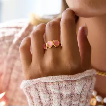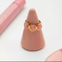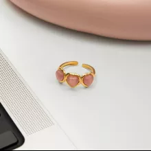 Sweet Pink Heart Cat’s Eye Stone Gold-Plated Adjustable Ring