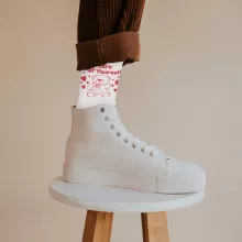 Looking for a way to add some personality to your everyday style? Check out Cute Teddy Bear Crew Socks! With a ribbed tube and cushioned bottoms, our socks are sure to make a statement. Plus, they’re super comfortable, so you can wear them all day long. Positive Quote Socks are the perfect pair for you.