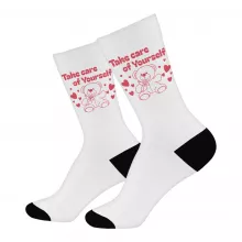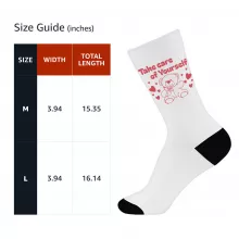 Cushioned foot bottom makes Take Care Of Yourself Unisex Socks a sure bet for everyday wear, from work, play, gym, sports, and beyond. These socks are designed to be all-season. This product is made breathable for when it’s warm but thick enough for when it’s cold during the winter.