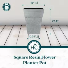 Add a touch of modern sophistication to your garden, porch, or indoor space with this tall square planter. Designed to impress, its sleek shape and unique stone-like texture create a timeless look that complements any style. Whether placed on your front porch, deck, or living room floor, this planter makes a stunning home décor statement while providing a spacious and secure home for your favorite plants.
