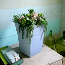 This planter’s combination of style and functionality makes it perfect for anyone who loves gardening or simply wants to brighten up their space. Its lightweight nature means you can easily rearrange your plants whenever you want, while its durable construction ensures it will look great season after season. The modern stone-like finish adds a refined touch to your home or garden, turning your plants into elegant focal points.