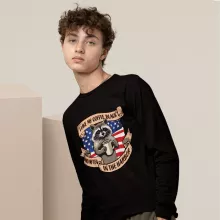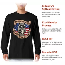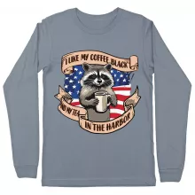 Tea in the Harbor Long Sleeve T-Shirt is proudly made with 7x less water than average manufacturers, in recycle-friendly facilities that also guarantee zero sweatshop conditions. Funny Raccoon T-Shirt is designed and printed in California.