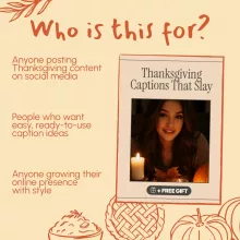 Get ready to make your Thanksgiving posts unforgettable with Thanksgiving Captions That Slay — your ultimate digital guide to crafting scroll-stopping, share-worthy captions. Whether you’re a social media manager, influencer, or just someone who loves to make their feed shine, this guide gives you everything you need to write the best Instagram captions for Thanksgiving. Filled with humor, gratitude, and creativity, it’s the perfect toolkit for boosting engagement and showing off your holiday spirit in style.