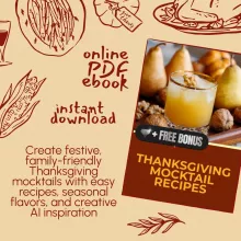 Make this Thanksgiving unforgettable with Thanksgiving Mocktail Recipes, your ultimate digital guide to creating delicious, family-friendly drinks that sparkle with seasonal flavor. This beautifully designed eBook is packed with refreshing ideas, expert tips, and AI-powered inspiration to help you craft stunning non-alcoholic beverages everyone will love. Whether you’re hosting a dinner party, planning a cozy fall gathering, or simply looking to add a festive touch to your table, this guide turns every sip into a celebration.