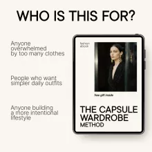 - Reduces overwhelm by teaching how to build a capsule wardrobe step by step