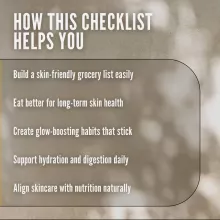 This checklist has been so helpful in guiding me to make better food choices for healthier skin! The best part is it doesn't break the bank!