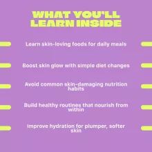 Unlike generic wellness eBooks, The Guide to Eating Your Way to Better Skin focuses solely on food-driven skin care. It’s packed with specific foods to eat for good skin, realistic meal planning tips, and actual science simplified for anyone to understand. You’ll walk away empowered with knowledge—and a practical plan you can stick to.