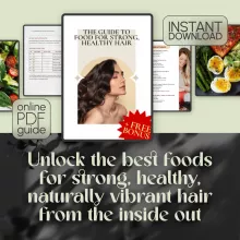 Download The Guide to Food for Strong, Healthy Hair today and start your journey to stronger, healthier, more radiant hair—naturally. It’s time to turn your meals into hair care. Instant download, forever access, and your best hair yet awaits.
