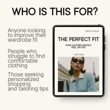 Whether you’re shopping for everyday wear or special occasions, this guide is designed for anyone who wants to understand the importance of clothing fit. Say goodbye to feeling uncomfortable or frustrated with your clothes! This eBook is perfect for fashion enthusiasts, those new to tailoring, and anyone who wants to get the most out of their wardrobe. Get ready to embrace a wardrobe that feels just as good as it looks.