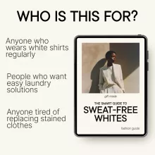 If you’ve ever pulled a favorite white shirt from the closet only to find stubborn yellow stains under the arms, this guide was made for you. The Smart Guide to Sweat-Free Whites is a practical, easy-to-follow digital resource that finally explains why sweat stains happen, how to remove them properly, and how to stop them from coming back. No confusing chemistry lectures, no outdated laundry myths—just clear guidance that works in real life.