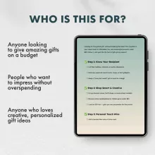 - Step-by-step gift strategy: Learn how to plan, shop, and personalize your gifts effortlessly.