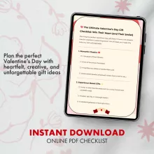 Don’t wait until the last minute! Download your copy of The Ultimate Valentine’s Day Gift Checklist: Win Their Heart (and Their Smile!) now and plan a day filled with love, laughter, and unforgettable memories. Perfect for printing or keeping on your device as your go-to Valentine’s Day planner. Make this February 14th one they’ll never forget!