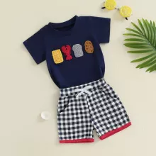 Get your toddler ready for sunny adventures with this charming two-piece summer outfit set for boys. Featuring a cute lobster-embroidered short-sleeve top paired with breathable plaid drawstring shorts, this set combines playful style with comfort. Whether it’s for a beach day, family picnic, or just playing outside, this outfit is perfect for keeping your little guy cool and cute all summer long.