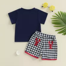 Toddler Boys Summer Outfit Set – Lobster Embroidered Top & Plaid Shorts