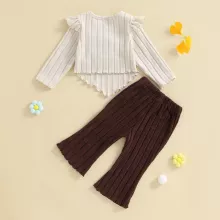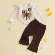 • 2-piece outfit set: Includes a crochet flower pullover and ribbed flare pants