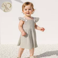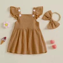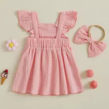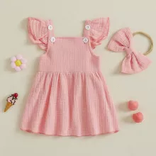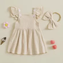 This sweet and stylish dress is crafted from a breathable blend of 95% cotton and 5% spandex, offering the perfect mix of softness and stretch. The solid color design makes it easy to accessorize, while the knee-length cut adds just the right touch of elegance. It comes complete with a matching bow headband to tie the whole look together—literally!