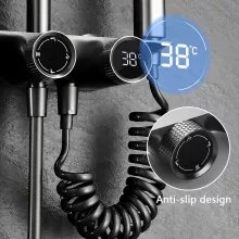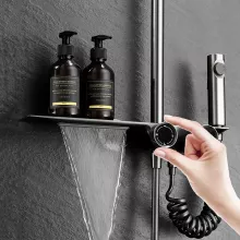 The Tomahawk Waterfall Shower Set boasts a range of features designed to enhance your bathroom experience. The shower faucet is made from high-quality copper, ensuring durability and a long lifespan. The stainless steel shower rod is robust and rust-resistant, providing a stable and secure mount for the showerhead. The top spray and hand spray are crafted from ABS anti-scalding material, ensuring safe and comfortable use.