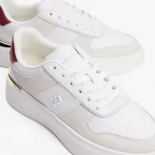 Crafted from premium napa leather, these low-top lace-up sneakers are built to impress. The mixed texture panels and iconic Tommy Hilfiger branding are complemented by a gold-tone trim on the heel, giving them a luxe edge that elevates any outfit. Whether you’re heading out for brunch, running errands, or adding a sporty twist to your casual wear, these shoes deliver both style and substance.