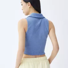 Crafted with care from a breathable blend of 95% cotton and 5% elastane, this top keeps you cool while offering just the right amount of stretch for day-long comfort. The light blue shade adds a refreshing pop to your wardrobe, while the sleeveless cut lets your skin breathe in the heat. The classic collar and round neckline give it a touch of tailored elegance, and the button-down front allows for effortless styling—wear it closed for a polished look or open over a tank for a laid-back vibe.