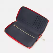 The Tommy Hilfiger Women’s Red Wallet isn’t just a pretty accessory; it’s built to impress with practical features: