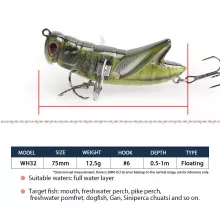 Bring your fishing game to the next level with this lifelike topwater insect lure designed to trigger explosive surface strikes. Measuring about 3 inches long and weighing roughly 0.44 ounces, this floating wobbler mimics the movement of a distressed locust, making it irresistible to hungry predators. Whether you’re casting in lakes, rivers, ponds, or coastal waters, this lure delivers high-impact action that grabs attention fast.
