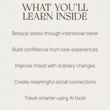 Travel Your Way to a Healthier Mind is a thoughtfully designed digital guide that explores the powerful connection between movement, mindset, and emotional balance. If you’ve ever felt stuck, burned out, or mentally overwhelmed, this guide shows how intentional travel can become a practical tool for healing and personal growth. Grounded in research, real stories, and modern AI-powered strategies, this guide focuses on the mental health benefits of traveling in a way that feels realistic, encouraging, and easy to apply—whether you travel often or are just starting to dream about it.